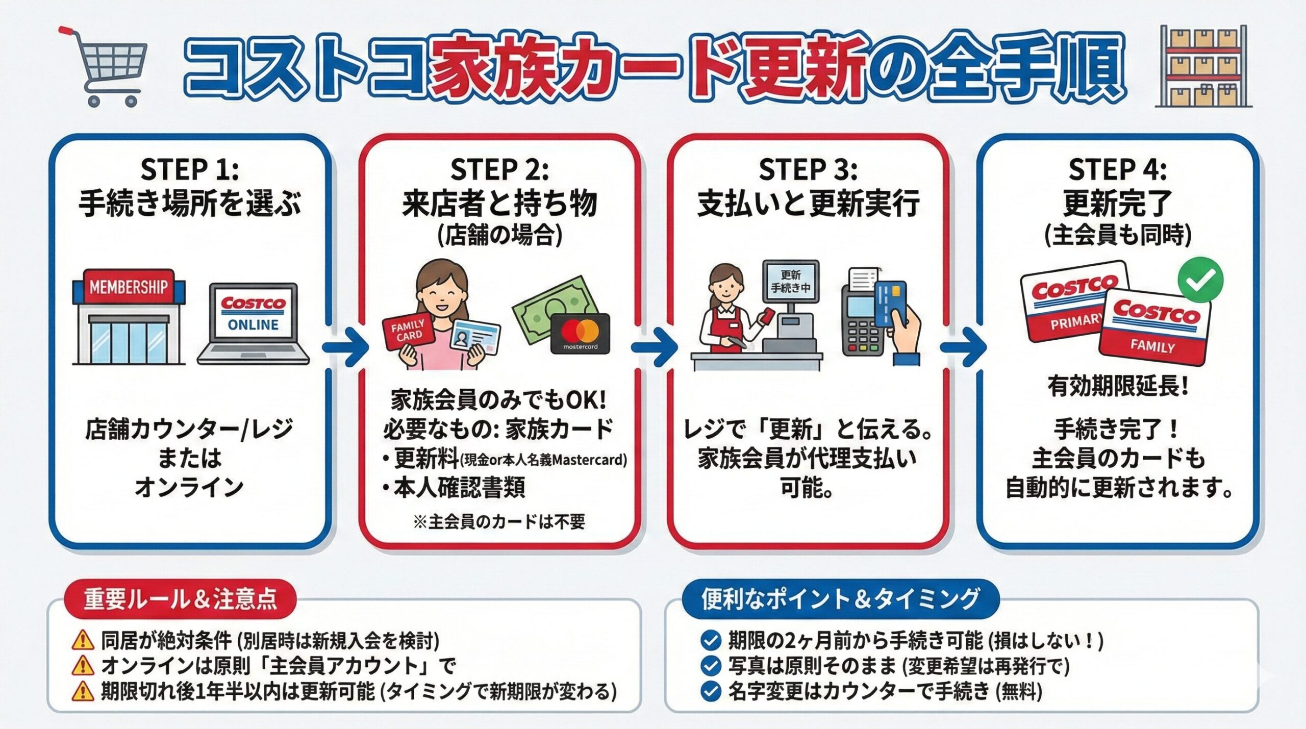 コストコ家族カード更新の全手順!支払い方法や別居時の注意点を解説